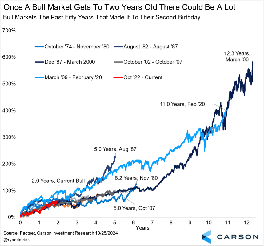 No one knows how long this bull will last, but the bottom line is history says be open to this bull market lasting much longer than probably most expect.